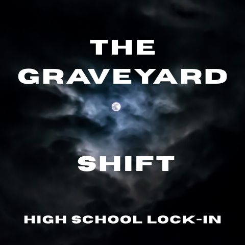 The Graveyard Shift is an overnight lock-in for high school students packed with late-night fun, team competition, and meaningful moments. Expect tons of snacks, high-energy team games (some in the dark), chill spaces with board games, movies, and time around a campfire to hang out and connect. Students will earn points throughout the night as they compete with their teams, with prizes on the line.